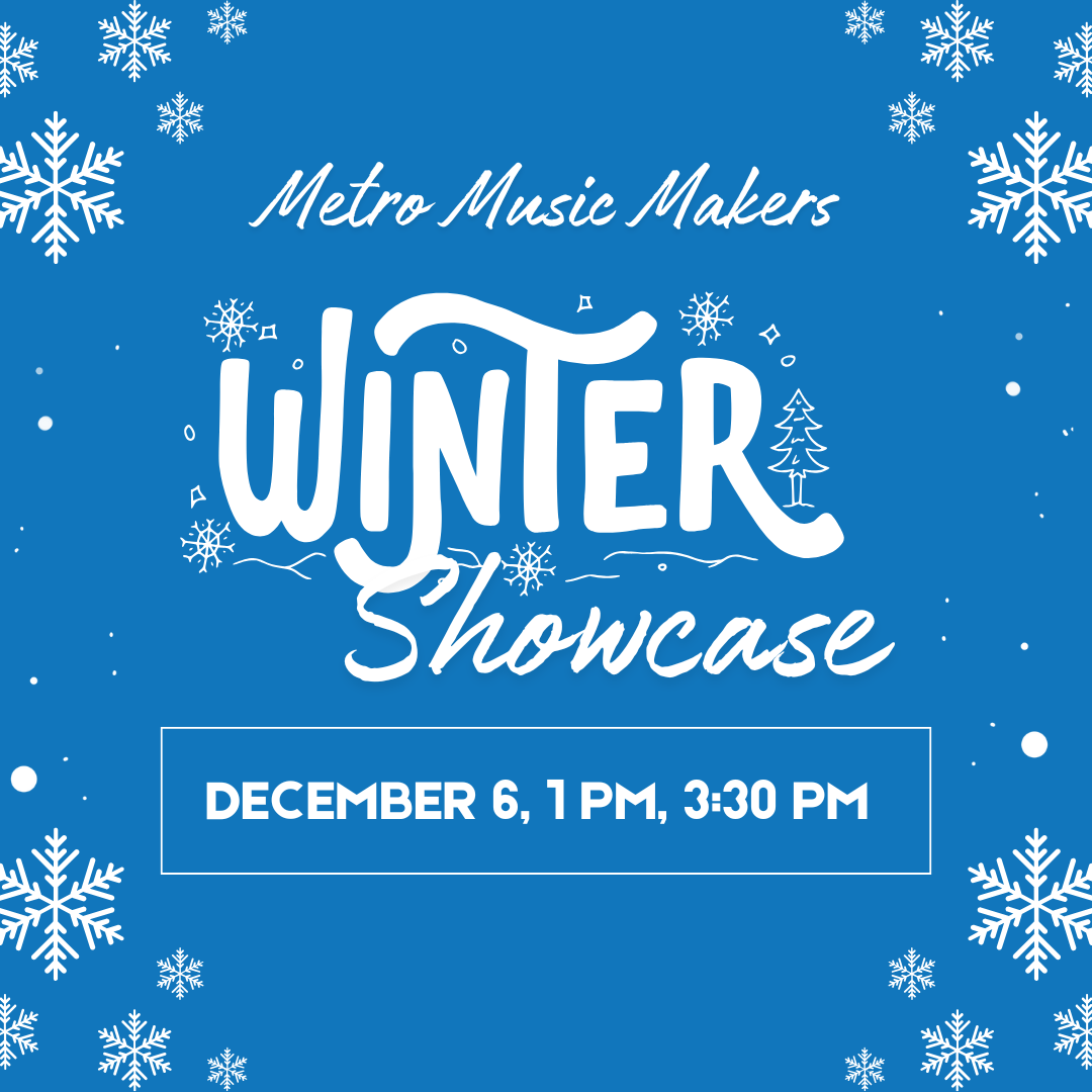Metro Music Makers is excited to announce our Winter Showcase 2025, to be held on Saturday, December 6. This one-day event will allow Metro Music Makers students to celebrate with family and friends while showcasing the progress they have made with their music.