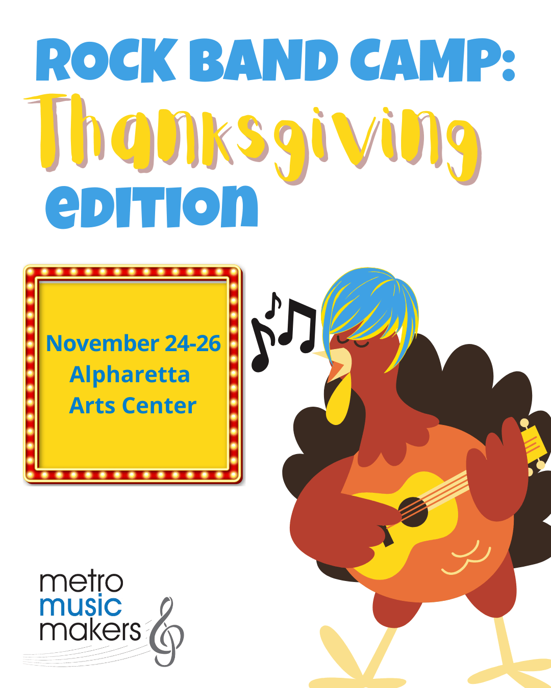 Our Thanksgiving camp is the same Rock Band Camp you love in the summer, just condensed into three days. Register soon to guarantee your child a spot in this fun camp and make their Thanksgiving Break the BEST break! |